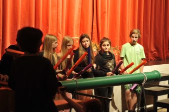 Musikalisch wurde das Stück wunderbar bereichert durch Auftritte des Schulchors, der Schulband, einer Boomwaker-Gruppe und den „Kukarachas“, die mit ihrer kleinen Ukulelen und großen Mexikanerhüten immer wieder das Publikum begeisterten.